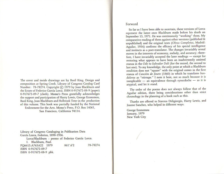 Poems of Federico García Lorca chosen and translated by Paul Blackburn