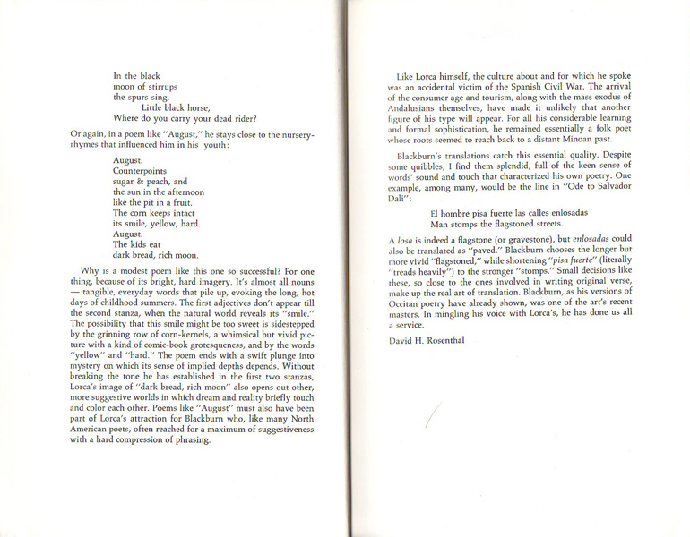 Lorca/Blackburn: Poems of Federico Garcia Lorca chosen and translated by Paul Blackburn